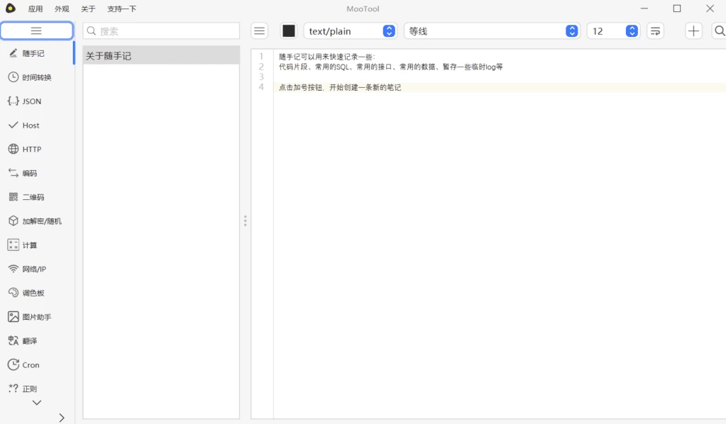 MooTool是一个开发者常用小工具,提供一键式的解决方案,以应对开发者在编码过程中遇到的各种常见问题。从Host切换到复杂的加密算法,MooTool几乎涵盖了所有你需要的工具,让你在处理各种琐碎任务时游刃有余。采用了Java语言进行开发,并且依赖于Hutool、FlatLaf、vscode-icons和iconfont等一系列优质库,确保了应用的稳定性和良好的用户体验。