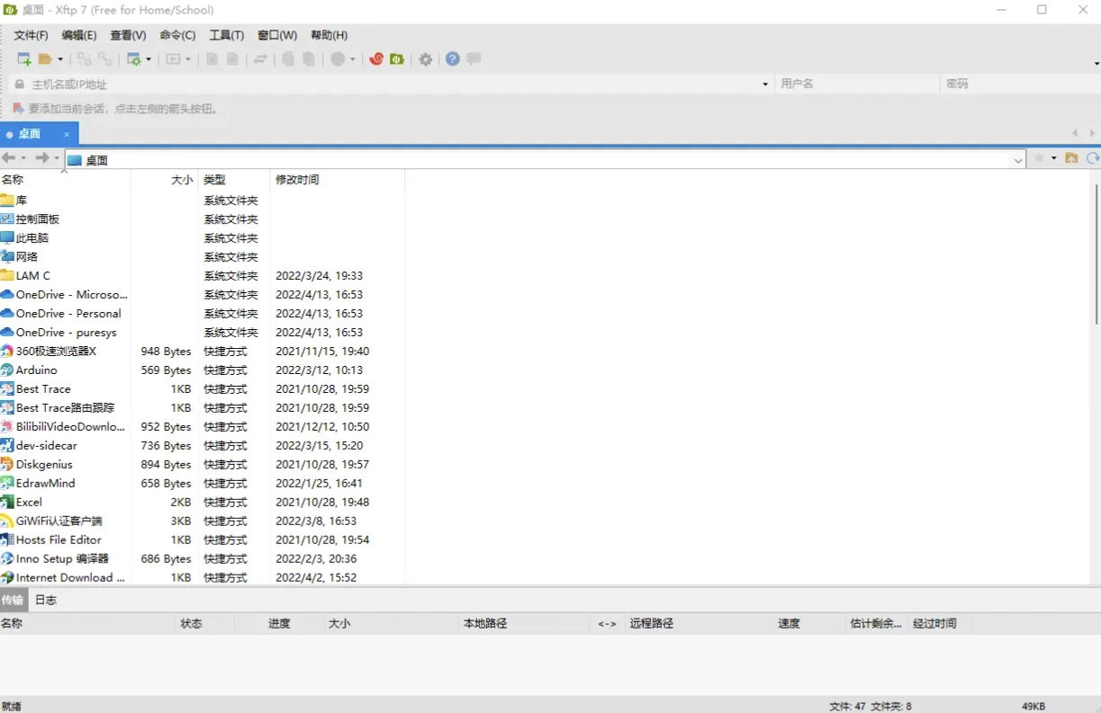 会话选项卡功能允许用户在单个Xftp窗口打开多个会话。所有打开的会话是通过简单的会话选项卡界面之间传输和文件在不同的服务器上可以很容易地打开会话。它不仅减少了系统资源的使用,还提供更有条理的工作环境来提高用户工作效率。
