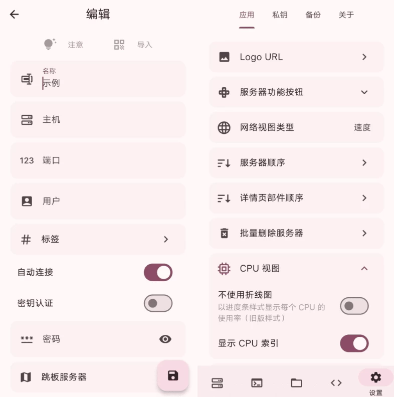 - SSH 终端:内置安全SSH客户端,支持密钥与密码认证,让您随时随地安全访问服务器
