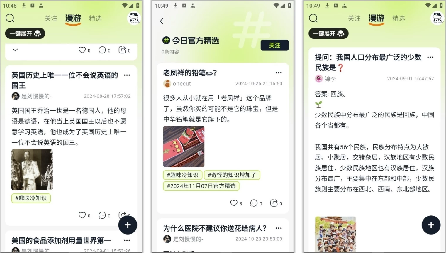 好奇时刻是一款旨在帮助用户通过轻松有趣的方式学习各种冷知识的应用。其界面设计清新美观,内容涵盖了趣味冷知识、动物与植物冷知识、生活常识、健康科普等多个领域。用户可以通过这款应用在一分钟内学到一个新奇的知识点,非常适合好奇心旺盛的朋友使用。
