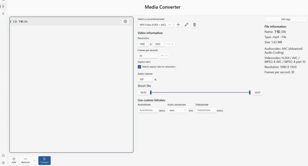 - 自定义编辑:允许用户更改分辨率、宽高比、比特率、帧率,并编辑文件标签(如标题、作者、专辑等)。