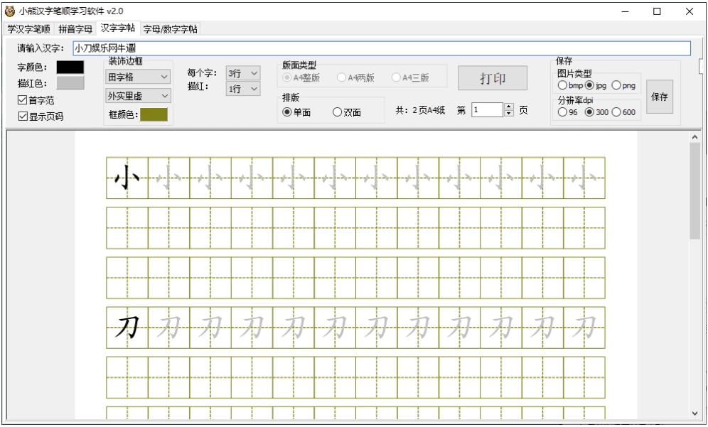 小熊汉字笔顺学习软件 v2.0 绿色版