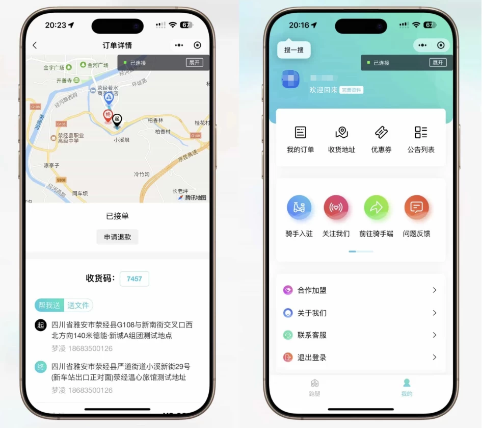 这是一款跑腿小程序,带有智能派单、系统派单、同城配送、校园跑腿、预约取件、用户端+骑手端
