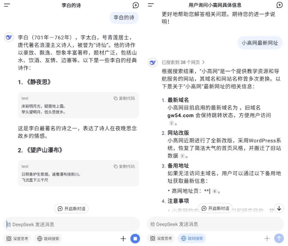 它的功能堪称全能,日常写作、翻译、问答轻松拿捏,独特的 “深度思考” 模式加上联网搜索,在编程、解题、文献解读等复杂任务里也游刃有余,推理思考能力一绝!使用体验更是拉满,既有便捷的电脑网页版 AI 助手和 API 服务,*期 iOS、Android 手机版 APP 重磅上线,新增拍照识字、文档上传分析功能,响应速度超快,国内还能直连畅用,毫无网络阻碍,实用性直接爆棚,快来体验吧!
