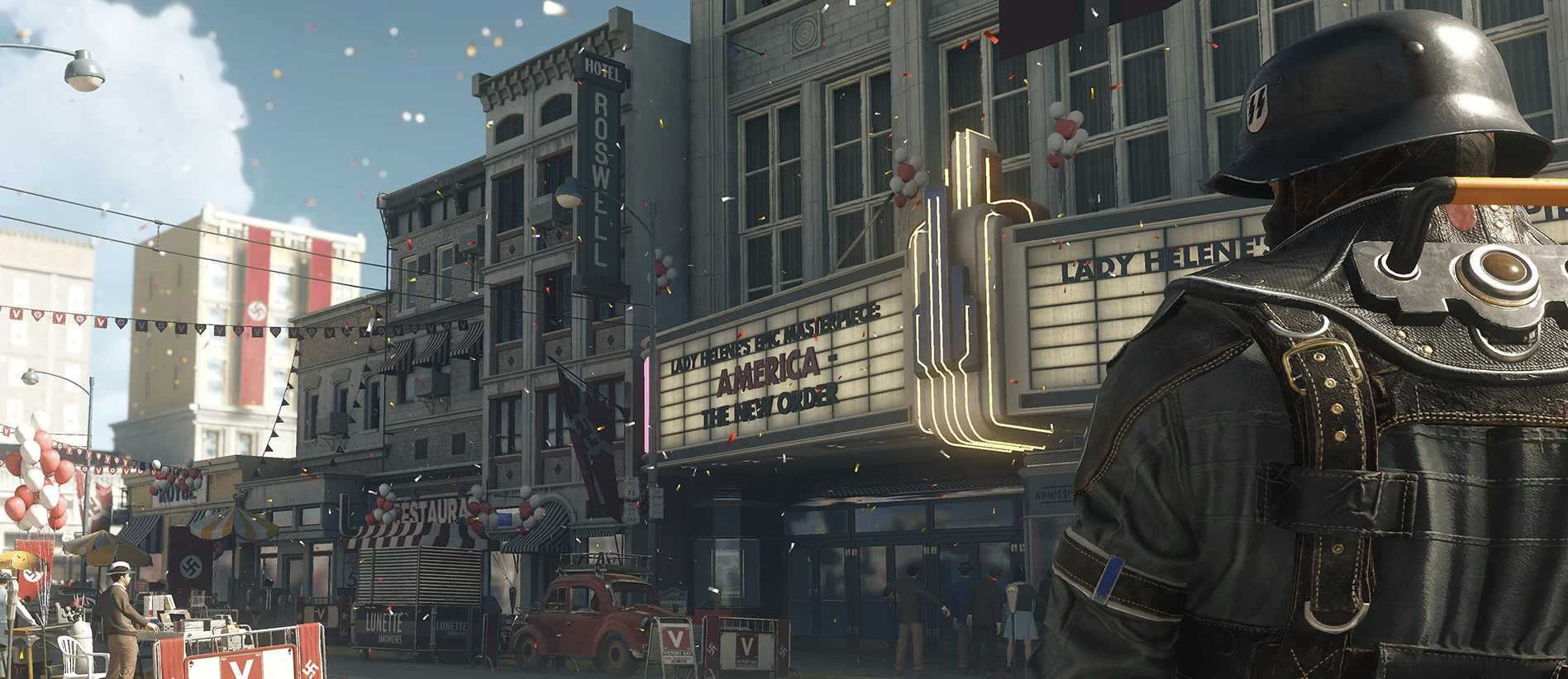《德军总部2:新巨人》是由Machine Games制作,Bethesda Softworks发行的一款第一人称射击游戏,是《德军总部》系列的最新续作,采用id Tech 6引擎开发。游戏将玩家带到纳粹控制的美国,你的任务是召集剩余的最勇敢抵抗军领导。在标志性的地点,比如小镇Roswell,新墨西哥,新奥尔良长沼和城市大道,核弹爆炸后的曼哈顿等地区大战纳粹。