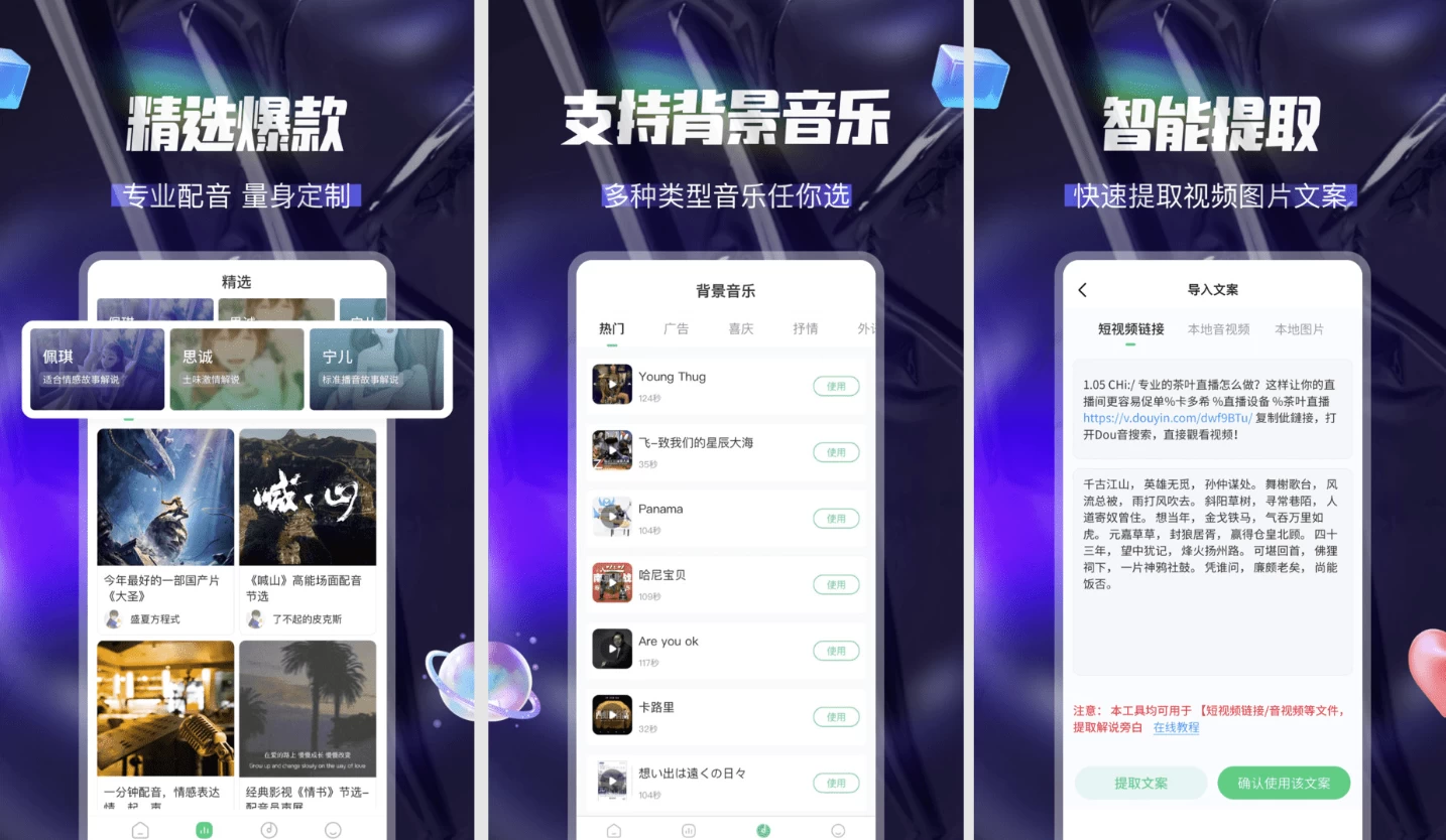 3. 真人成品录音:海量真人成品录音可直接导出,风格多样,效果震撼。