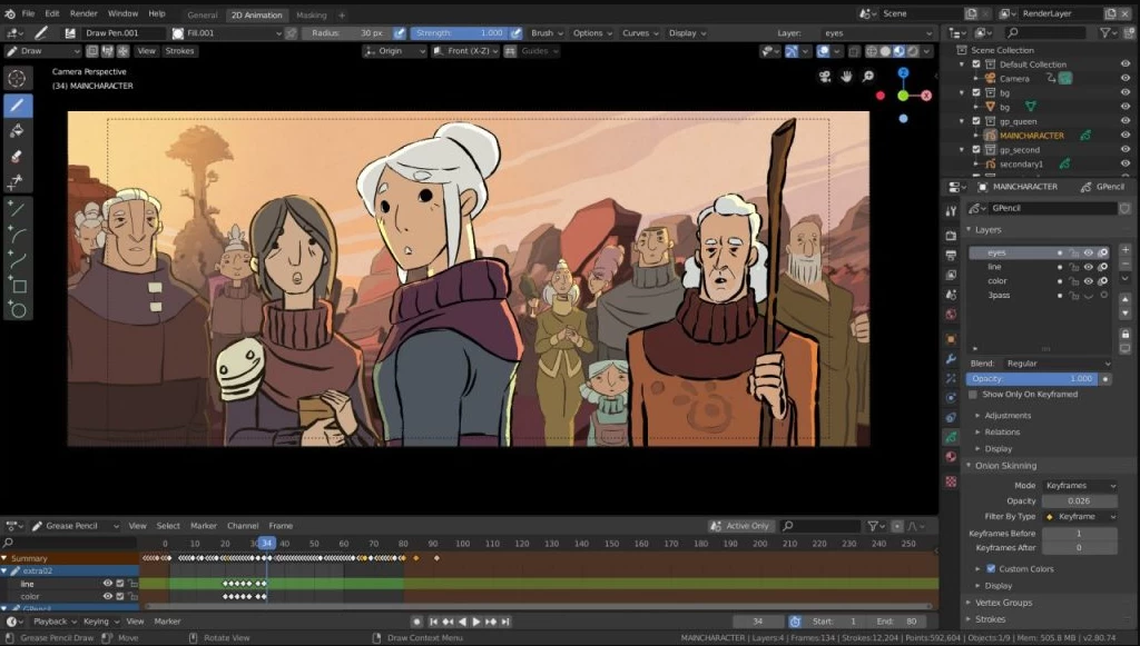 Blender突破性的融合故事板和2D内容设计于3D视图中。