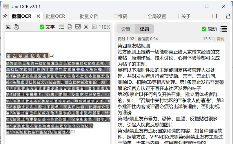 Umi-OCR v2.1.5 离线截图批量文字识别软件