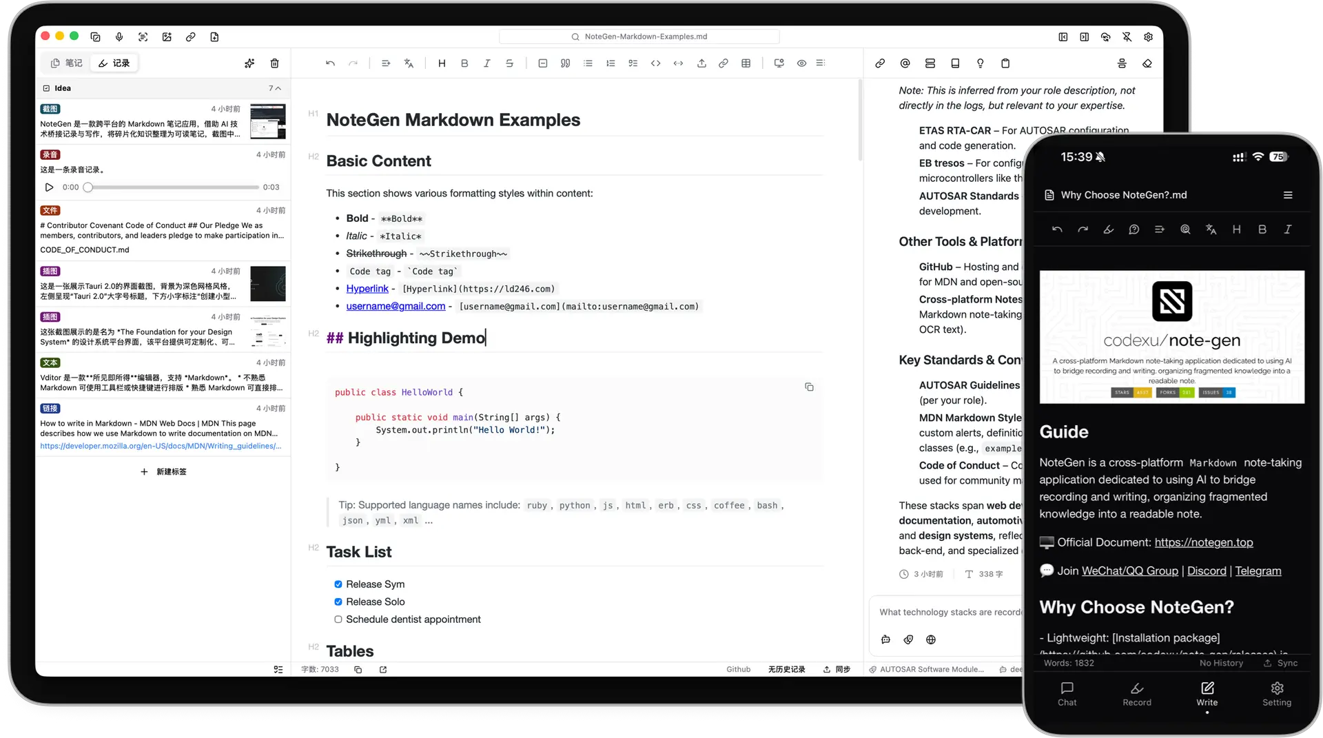 无论是快速记忆灵感,还是系统化汇总信息,NoteGen 都能为用户提供灵活又高效的解决方案,让知识整理变得更加轻松、便捷。