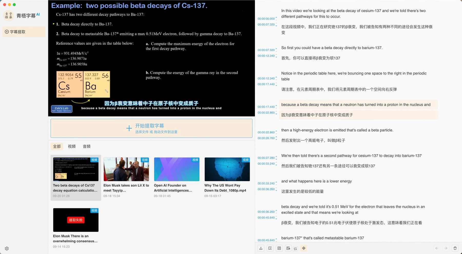 青梧字幕 是一款免费简单易用的AI字幕智能提取+翻译工具,原理是利用模型自动识别5音视频文件当中的音频并生成为对应的语种字幕,实现提取及翻译后续处理操作。目前暂支持windows及mac(M及intel系例处理器)系统环境,支持识别中文、英语、日语、韩语等99种语言。