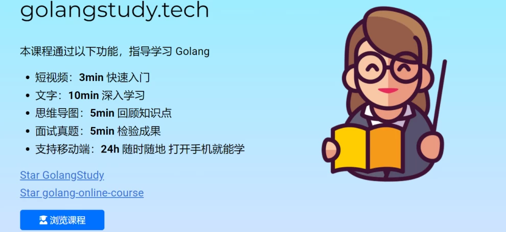 网站简介 一个系统化的 Go 语言学习平台,帮助用户从基础到高级掌握 Go 语言的各个方面。 网站还涵盖了如 Kubernetes、算法 / 数据结构和 Leetcode 的内容,以……